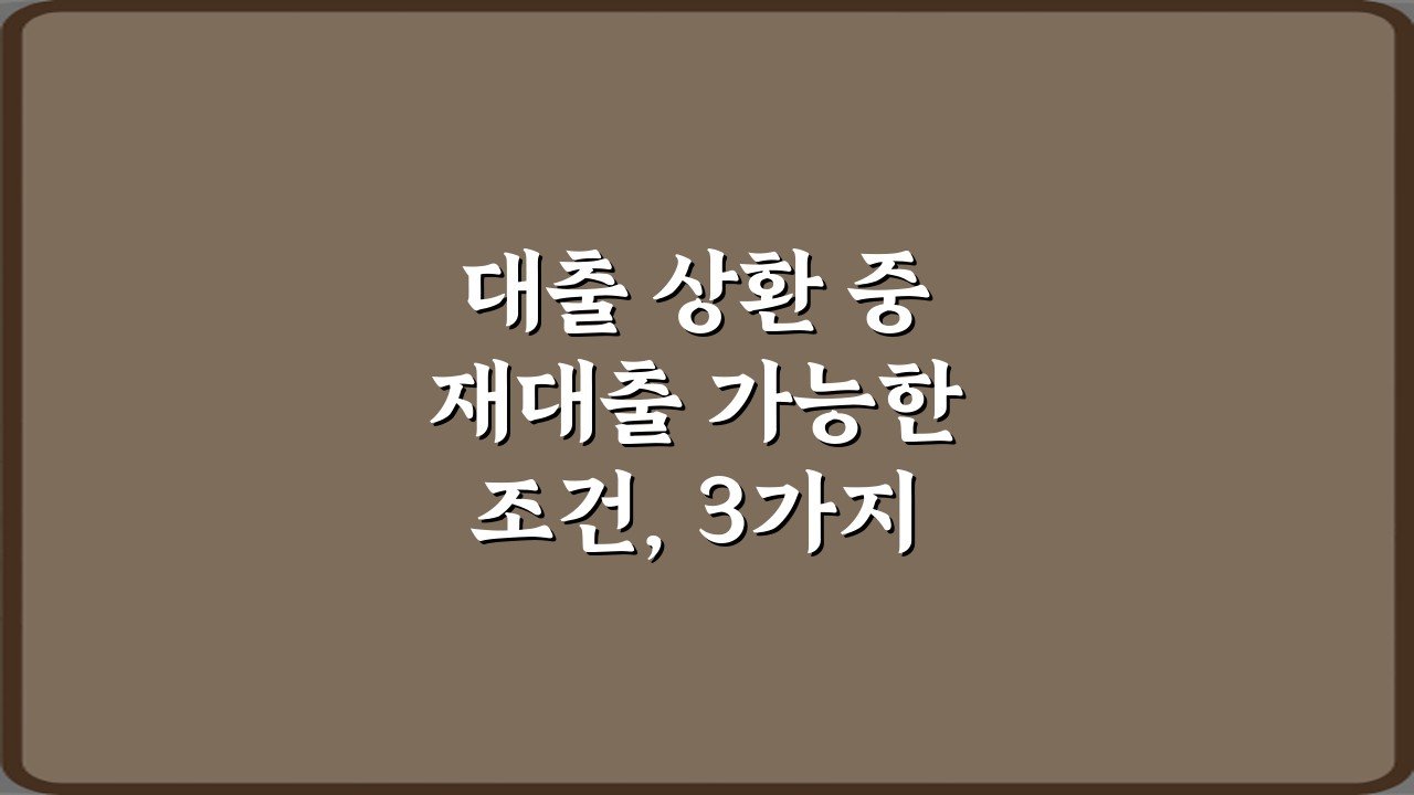 대출 상환 중 재대출 가능한 조건을 찾으시나요? 막막하게 느껴졌던 문제, 3가지 핵심 비법으로 성공 전략을 알려드립니다. 지금 바로 당신의 해결책을 찾아보세요!
